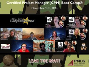 Congratulations to the outstanding leaders receiving their Certified Project Manager (CPM)® certification after successfully completing the challenging and intense Certified Project Manager (CPM) Boot Camp® December 9th -13th. Each graduate demonstrated that they possess the project management and leadership skills, confidence and discipline to successfully lead projects of all sizes and complexity.